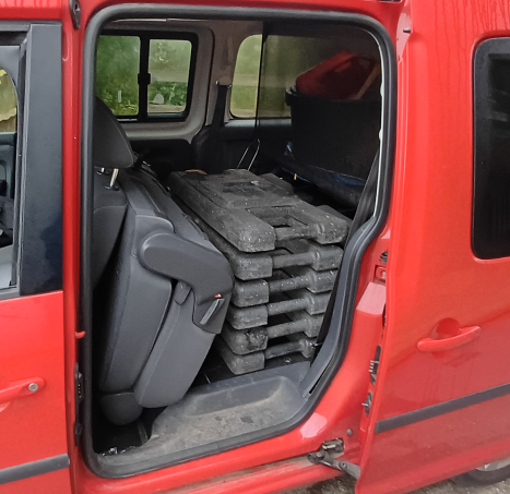 Mit dem Bauhof hat Gunter ein paar Tage vorher ausgemacht, dass wir noch ein paar fehlende Dinge von ihnen bekommen. Kurz vor 8 in der Früh hat er also folgendes übernommen: