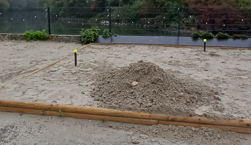 - 4 Schubkarren Sand als Beimischung für den Lehm und zum Modellieren der Negativform des Backofens und