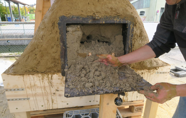 So geht es jetzt weiter: Wir lassen den Ofen nun trocknen, so lange das geht. Der noch feuchte Lehm sollte noch keinen starken Frost abbekommen, das wäre schlecht für die zukünftige Stabilität des Lehms. Leichten Frost könnten wir mit einer langbrennenden Grabkerze im Offeninnenraum überbrücken. Bevor es aber richtig kalt wird, müssen wir ein vorsichtiges Trocknungsfeuer im Innenraum starten. Ich gebe Bescheid, wenn es soweit ist.
