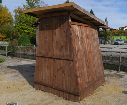 Das war es erst einmal, was den Ofen anging. Da das Wetter trocken und nochmal recht warm war haben wir aber die Gelegenheit genutzt und einen ersten Anstrich Holzschutzfarbe an die Einhausung aufgerollert und -gepinselt. Der Kasten schaut jetzt nochmal ein wenig schicker aus, was meint ihr?