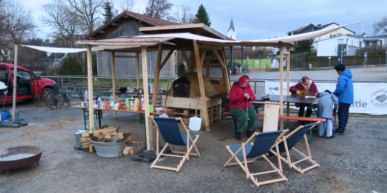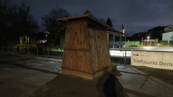 - Im neuen Jahr sollten wir außerdem eine kleine Feier machen, zu der wir den Stadtrat und die beteiligten Stadtangestellten zum Pizzaessen einladen. Immerhin haben wir den Platz und einige Ressourcen von der Stadt bekommen und eine schaut-her-was-wir-tolles-draus-gemacht-haben-Botschaft ist angebracht, wie Gunter findet. Ein Spendenschwein wird natürlich auch aufgestellt, vielleicht möchte da ja jemand auch etwas für z. B. einen Brennholzeinkauf spenden.