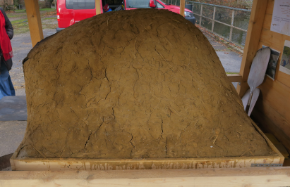 Bei Tageslicht konnten wir den Ofen gut inspizieren, die Risse auf der Außenseite sind mit fortschreitender Trocknung etwas größer geworden, aber immer noch unproblematisch und normal. Im Frühling können wir uns dran machen, diese Risse mit feinem Lehm zuzuschmieren. Dann sieht er von außen wieder schön aus und es werden sich kaum mehr neue Rissen bilden. Am Samstag Nachmittag sah der Ofen so aus:
