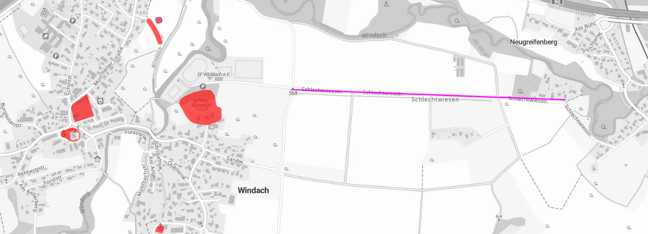 Zwischen Windach und Neugreifenberg führt tatsächlich ein schnurgerader alter Weg (namens „Schlechtwiesenstraße“). In der Uraufnahme war es ein Fußweg, der von Unterwindach nördlich an der Burg Windach vorbei führte und nach Greifenberg ging. Nach einer Windach-Überquerung mündete er in die Chaussee.