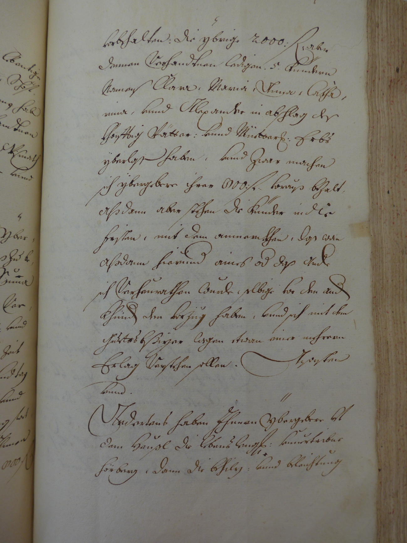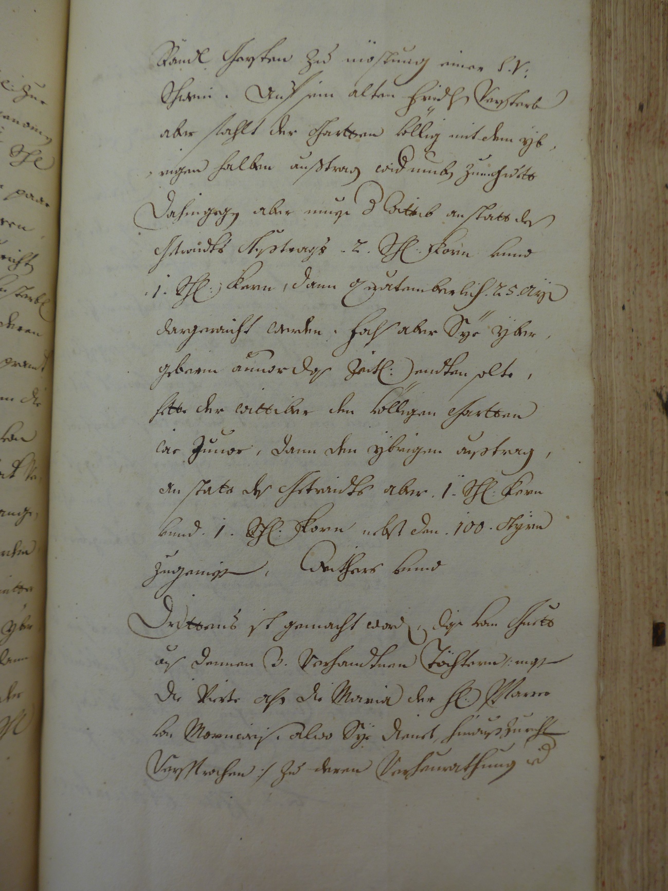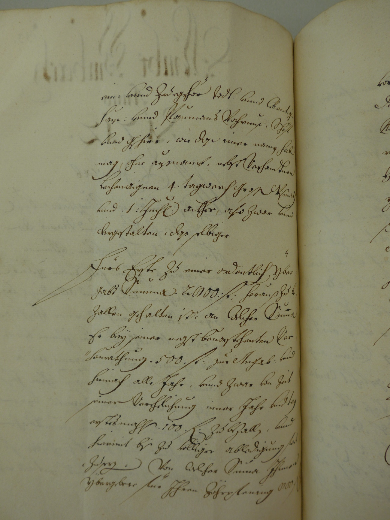 Fürs Erste zu einer ordentlich Übergabs Summa 2000: f heraus zu zallen gehalten ist an welcher Summa Er bey seiner negst bevorstehenten verheurathung. 500. f zue Angab: und hinach alle Jahr, und zwar von Zeit seiner Verehelichung einen Jahr und Tag erstesmahl .100. f zu bezallen, und hiemit bis zu völliger abledigung hat Zu …………..