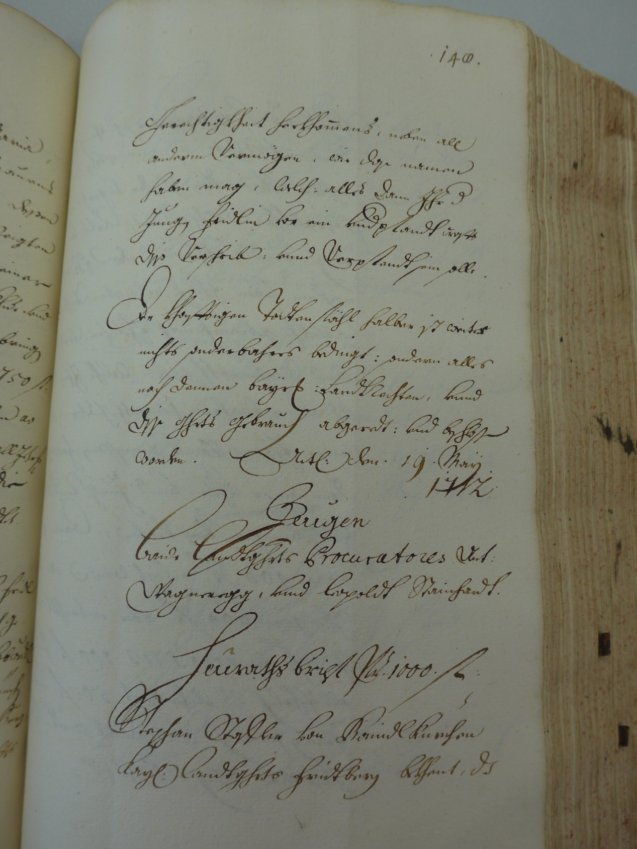 750 Gulden sind bereits bezahlt worden. Zu Pfingsten im Jahr 1713 werden 100 Gulden, dann aber alljährlich 50 Gulden erlegt, bis die Summe beglichen ist.